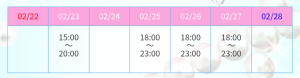 [02/22 05:00]~本日22日~